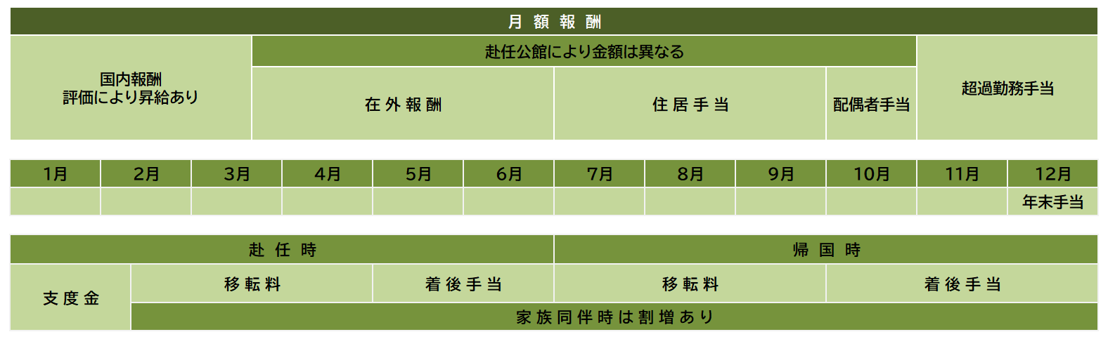 技術派遣員 技術派遣員の待遇 報 酬 休 暇 福利厚生社会保険完備雇用保険厚生年金保険健康保険海外労災 住居防犯対策費(対象地域のみ) 健康管理休暇制度(対象地域のみ) 緊急時の取り決めアリ。「緊急事態における在外公館派遣員の取り扱いについて」